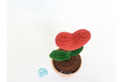 Chậu trái tim được làm từ chất liệu len mềm mạiĐược đan móc bằng tay tỉ mỉ, khéo léo
