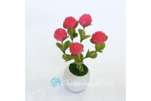 Chậu hoa đất sét mini - Cây cúc bách nhật