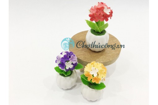 Chậu hoa đất sét mini - Cây hoa sống đời /cây lá bông