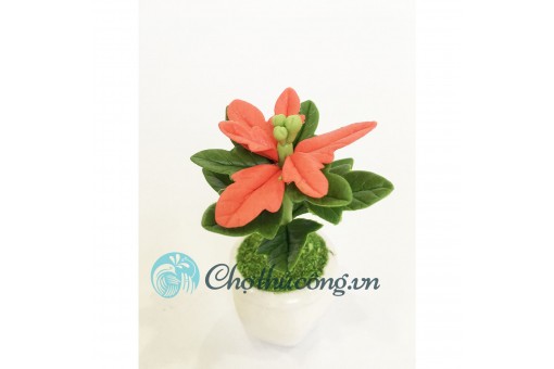 Chậu hoa đất sét mini - Cây hoa trạng nguyên lá đỏ may mắn