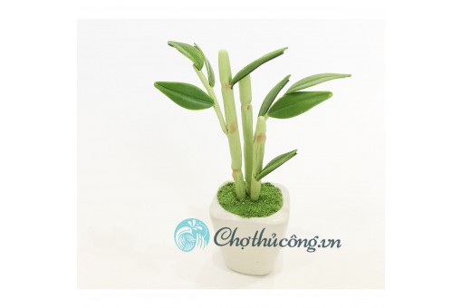 Chậu hoa đất sét mini - Cây trúc phong thủy may mắn
