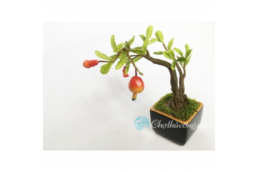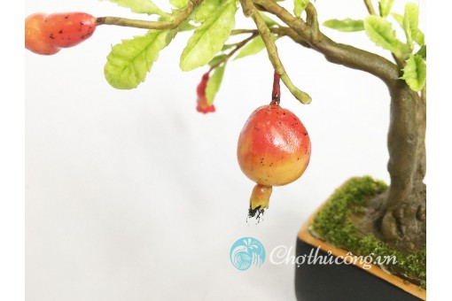 Tạo hình hoàn toàn thủ công bonsai thạch lựu từ đất sét mini xinh xắn trong chậu gốm sứ sang trọngHoa đất sét mini có màu sắc tươi tắn, hài hòa, chân thật