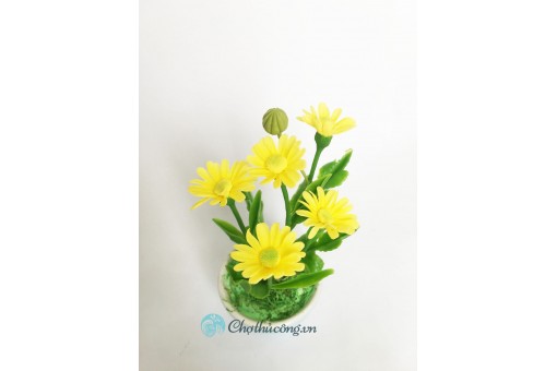Chậu hoa đất sét mini- Bụi cúc họa mi trong cốc