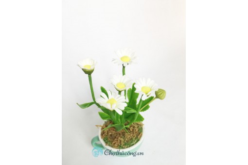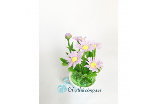 Tạo hình hoàn toàn thủ công bụi cúc họa mi từ đất sét mini xinh xắn trong cốc sứ xinh xắnHoa đất sét mini có màu sắc tươi tắn, hài hòa, chân thật