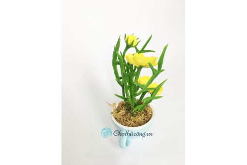 Chậu hoa đất sét mini- Bụi sao nhái trong cốc