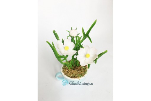 Tạo hình hoàn toàn thủ công bụi sao nhái từ đất sét mini xinh xắn trong cốc sứ xinh xắnHoa đất sét mini có màu sắc tươi tắn, hài hòa, chân thật