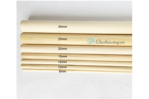 Combo 10 thanh gỗ tròn gỗ thông phi 0.6cm x 50cm gỗ thông