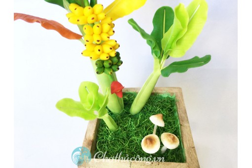 hậu hoa đất sét mini- Cây chuối mộc mạc