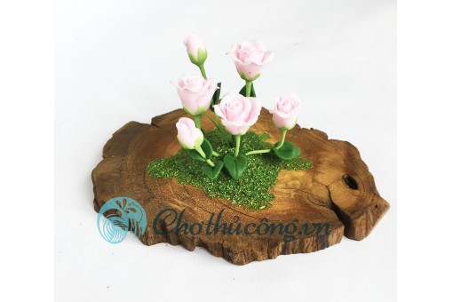 Tạo hình hoàn toàn thủ công hoa hồng mini từ đất sét Nhật Thái xinh xắn kết hợp gỗ tự nhiên độc đáoMàu sắc tươi tắn, hài hòa, vintage