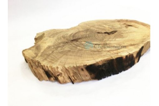 Khoanh gỗ có hình dạng tự nhiên độc đáo khác nhau và còn nguyên khối mộc mạc, gỗ chắc chắn và dày dặn.