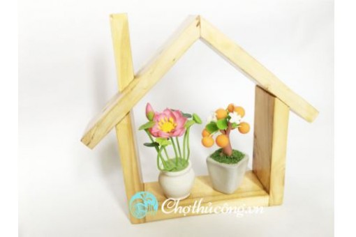 Khung kệ gỗ treo tường, để bàn dùng trang trí decor hình Ngôi nhà