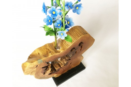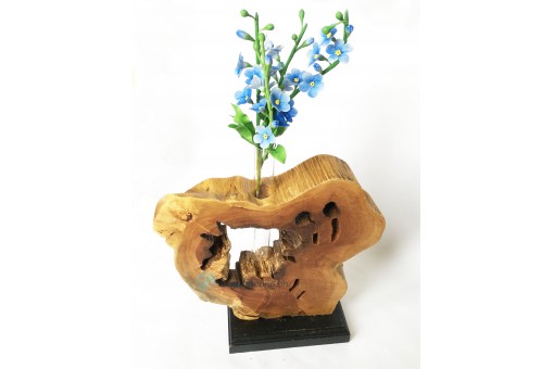 Lọ hoa gỗ lũa tự nhiên có lọ thủy tinh và đế, hình dáng độc đáo