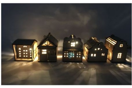 Nhà gỗ nhỏ xinh có đèn chạy bằng pin nhiều chế độ sáng phù hợp trang trí, decor vintage, quà tặng, ...