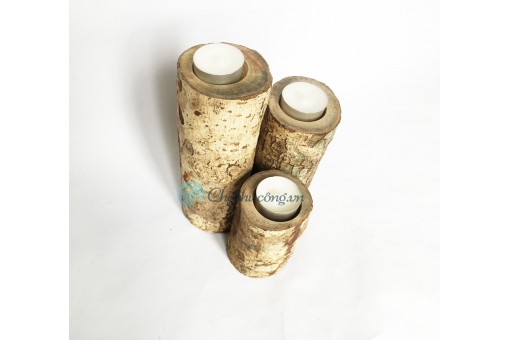 Set 3 đế nến, chậu gỗ trồng cây loại rất cao 10-15-20cm